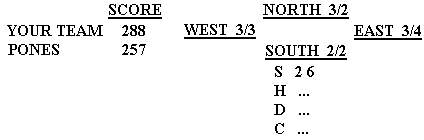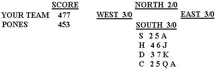 SUBSEQUENTLY, THE SAME HAND IS ANALYZED IN THE CONTEXT OF ONE OR MORE DIFFERENT GAME SCORE SITUATIONS IN ORDER TO DEMONSTRATE HOW BIDS NEED TO BE ADJUSTED IN ORDER TO ACCOUNT FOR THE RISK/REWARD OPPORTUNITIES PRESENTED BY THOSE SCORE SITUATIONS.